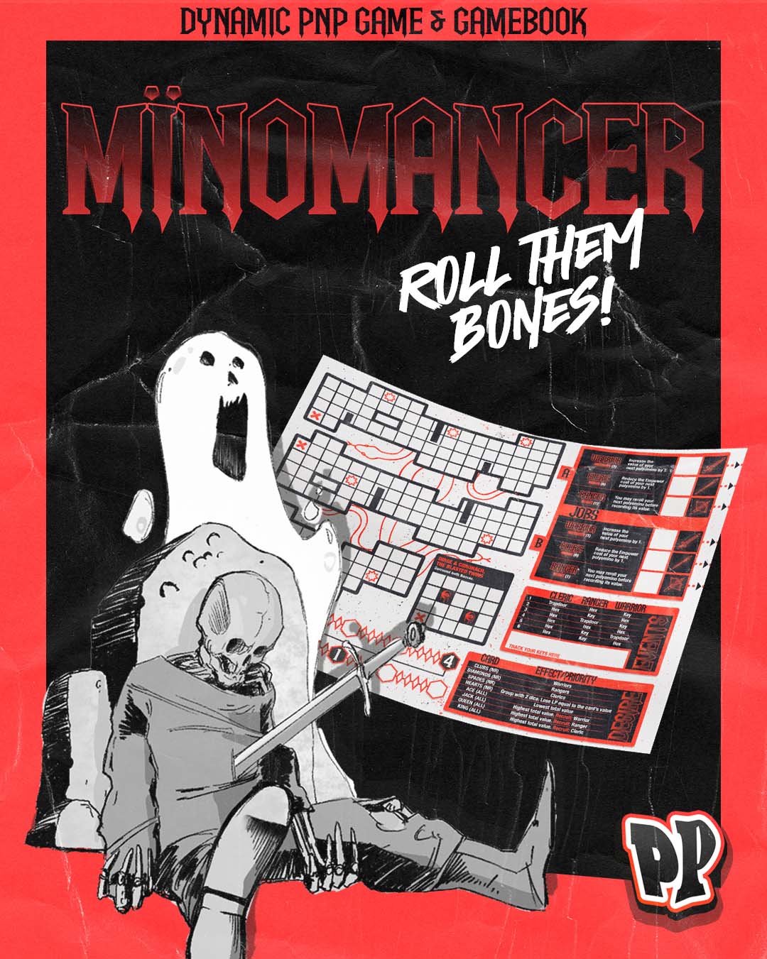 Mïnomancer: Roll Them Bones! is a solo roll-and-write dungeon crawler where you invade the lair of a rival necromancer.